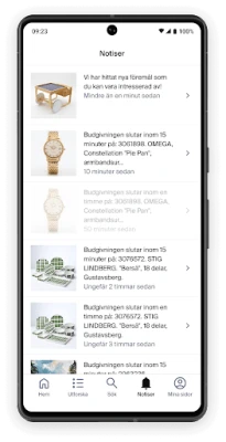 Vår intuitiva plattform gör det enklare än någonsin att delta i spännande budgivningar. Placera dina bud i realtid eller utnyttja vår smarta budagent som automatiskt bevakar och lägger bud åt dig upp till ditt förbestämda maxbelopp. När budgivningen är avslutad kan du enkelt och säkert slutföra din betalning direkt i appen, och sedan arrangera smidig transport av dina nyförvärv, med möjlighet att följa leveransen hela vägen. Anpassa din upplevelse genom att skapa personliga bevakningslistor för specifika auktioner eller sätt upp prenumerationer på dina drömobjekt baserat på sökord, så meddelar vi dig när de blir tillgängliga.