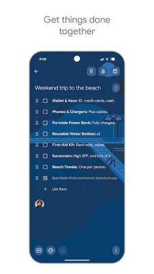 Skapa, dela och samarbeta med lätthet. Google Keep förvandlar gemensam planering till en smidig upplevelse, perfekt när du ska arrangera den där överraskningsfesten eller arbeta på ett projekt tillsammans. Dela dina anteckningar med vänner och familj och se idéer växa fram i realtid. För att hålla ordning i ditt digitala tankearkiv kan du enkelt märka dina anteckningar med anpassade färger och etiketter, vilket gör det blixtsnabbt att hitta det du behöver. En smart sökfunktion säkerställer att ingen information går förlorad i mängden, och med möjligheten att fästa viktiga anteckningar direkt på din startsida via widgetar eller som genvägar på din Wear OS-enhet, är det viktigaste alltid i fokus.