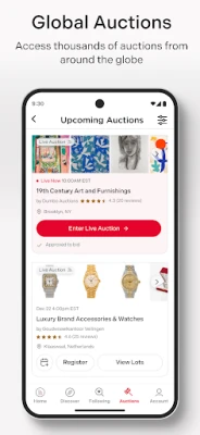 Delta i världens mest exklusiva auktioner direkt från din mobila enhet. Upplev spänningen med livebudgivning och få tillgång till unika föremål från hela världen, var du än är. Enkel åtkomst till premiumauktioner.