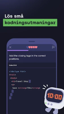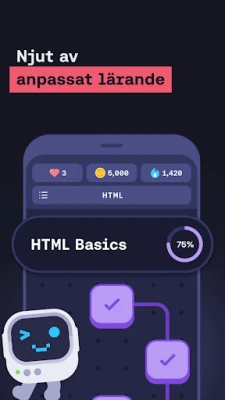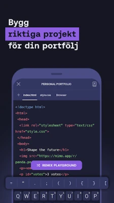 Mimo är appen som lär dig koda i Python, JavaScript, HTML, CSS och SQL. Bemästra AI-assisterad utveckling, bygg projekt från grunden och skapa produktionsredo mjukvara. Framtidssäkra dina färdigheter och starta din utvecklarkarriär.
