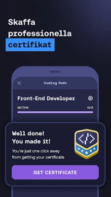 Mimo ser till att dina färdigheter förblir relevanta i en ständigt föränderlig bransch. Bemästra samarbetsmetoder, verktyg och arbetsflöden som används av moderna utvecklare. Följ dina framsteg, tjäna certifikat och håll motivationen uppe med streaker och topplistor. Mimo:s filosofi är att du ska lära dig genom att bygga riktig mjukvara från första dagen, snarare än att fastna i månader av endast teori. Oavsett om du är en total nybörjare eller en erfaren utvecklare som vill utöka din kompetens, erbjuder Mimo den praktik och de projekt som krävs för att bygga en framtidssäker karriär inom tech-världen.