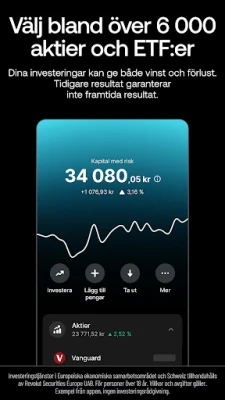Att skicka pengar har aldrig varit enklare. Överför eller begär medel i mer än 30 valutor med ett enda tryck, till vem som helst, var som helst. Mellan Revolut-vänner sker överföringar omedelbart, och du kan chatta, skicka och ta emot pengar direkt i appen. Slipp krångel med att dela på kostnader; dela, diskutera och gör upp om utgifter i ett och samma flöde, och varför inte lätta upp stämningen med en rolig gif? Revolut ger dig även möjlighet att utforska aktiehandel för att utöka dina finansiella horisonter. Investera från endast 1 € i över 2 000 aktier från världens mest framstående företag (andra avgifter kan tillkomma). Handla courtagefritt inom din månatliga paketgräns och fördjupa dina kunskaper med våra kurser och quiz – tänk på att kapital med risk gäller.