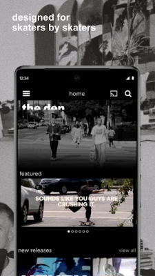 'the den' bjuder in till ett universum av unika funktioner. Upplev 'the den TV', en kurerad 24/7 livekanal som konstant spelar det bästa inom skatevideo. Få notiser om de senaste, stora releaserna, vare sig det handlar om hela filmer eller enskilda delar. Utforska kompletta podcastserier från bland annat The Bunt, dyk ner i dolda skatevideopärlor från världens alla hörn, och navigera genom expertkuraterade spellistor. Med avancerade sökfunktioner är det enkelt att hitta innehåll baserat på märke, filmare, åkare, plats eller butik. Dessutom finns föräldrakontroller för de yngre åkarna och exklusiva 'den deals' på skateprylar du inte hittar någon annanstans. Detta är bara en glimt av vad som väntar dig.